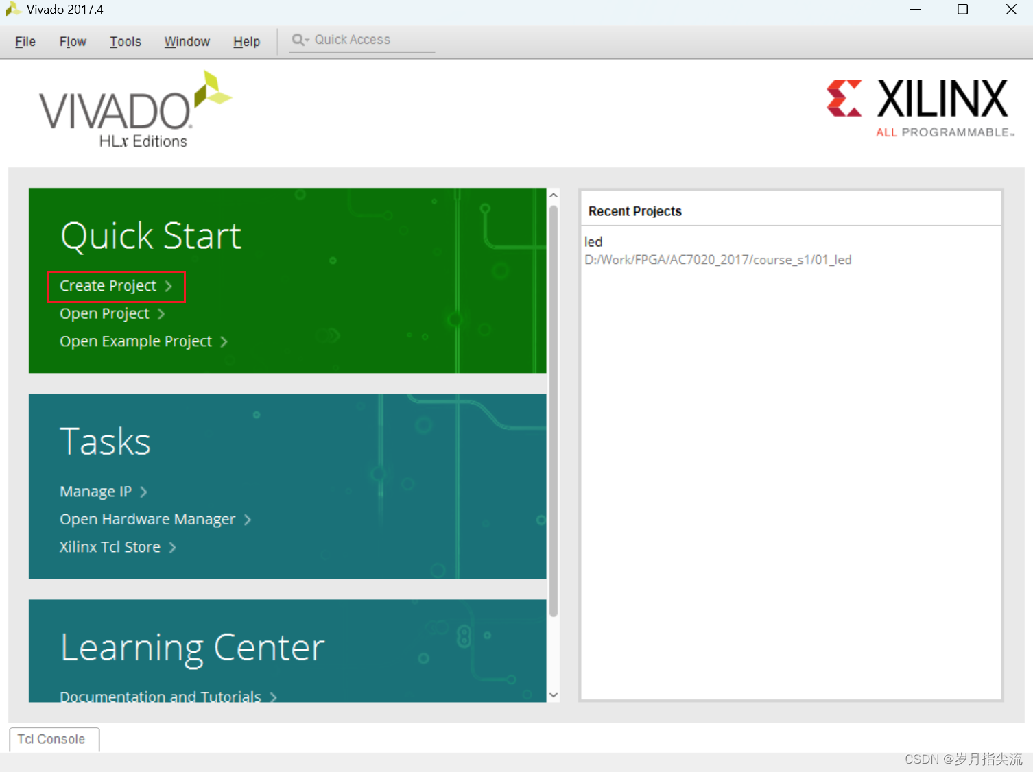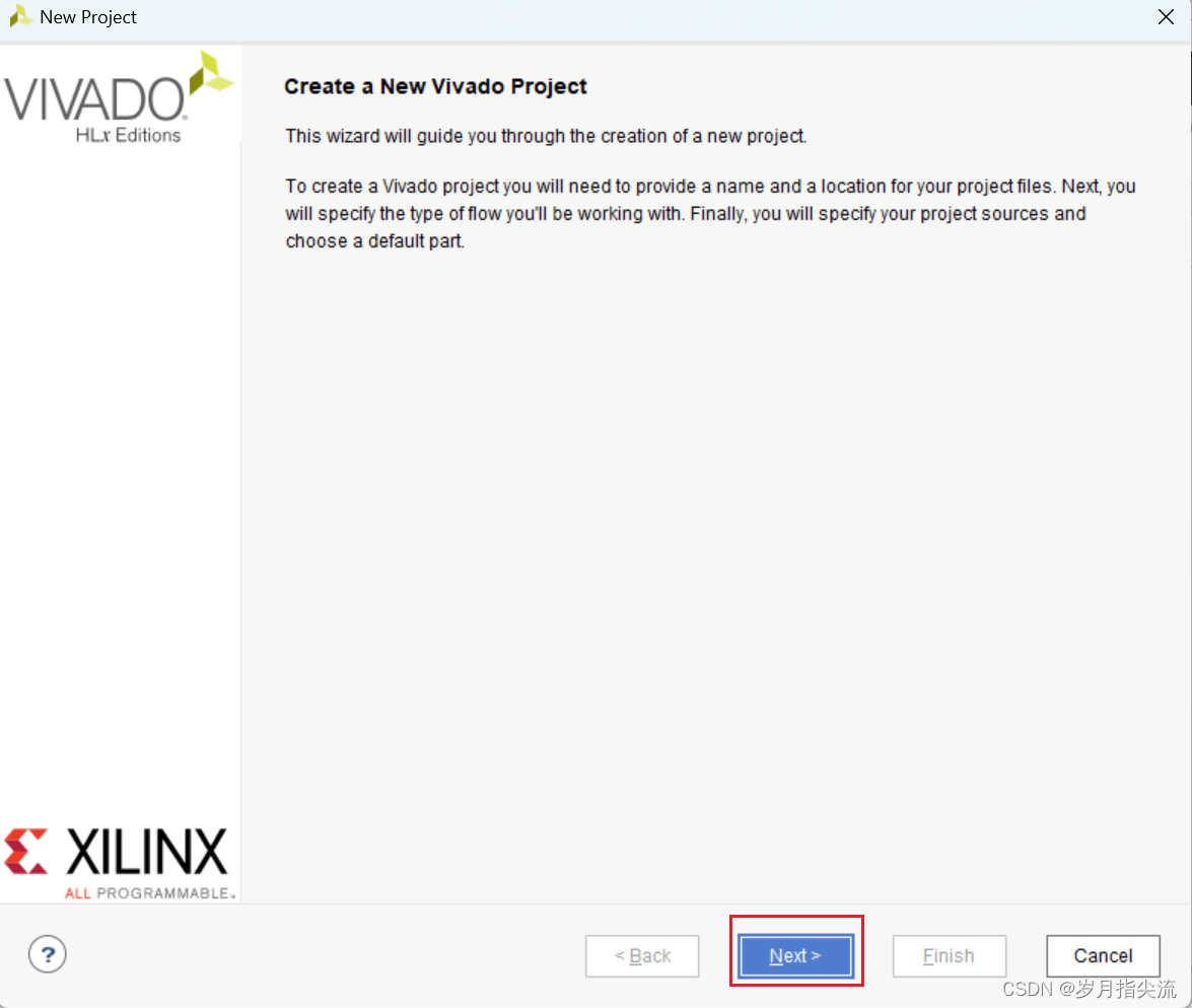 1、启动 Vivado,在 Vivado 开发环境里点击 “Create New Project”,创建一个新的工程