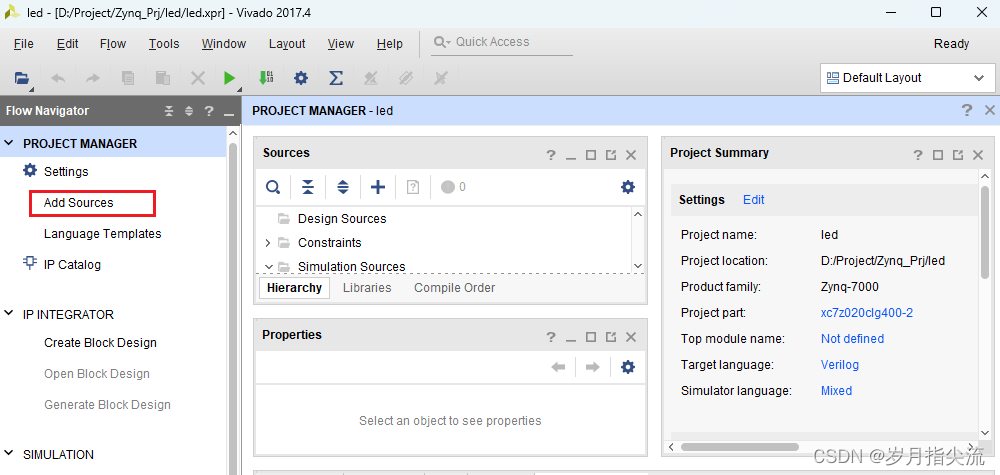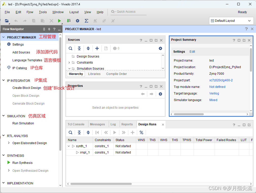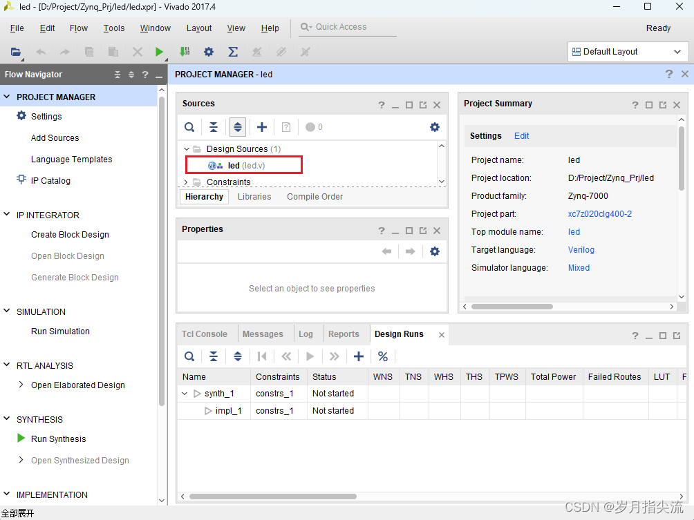 本节我们要做的是熟练使用 Vivado 创建工程并实现对 LED 灯控制,每秒钟控制开发板上的 LED 灯翻转一次,实现亮、灭、亮、灭的控制。会控制 LED 灯,其它外设也慢慢就会了。