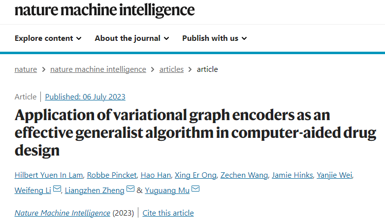 Lam, H.Y.I., Pincket, R., Han, H. et al. Application of variational graph encoders as an effective generalist algorithm in computer-aided drug design. Nat Mach Intell (2023).