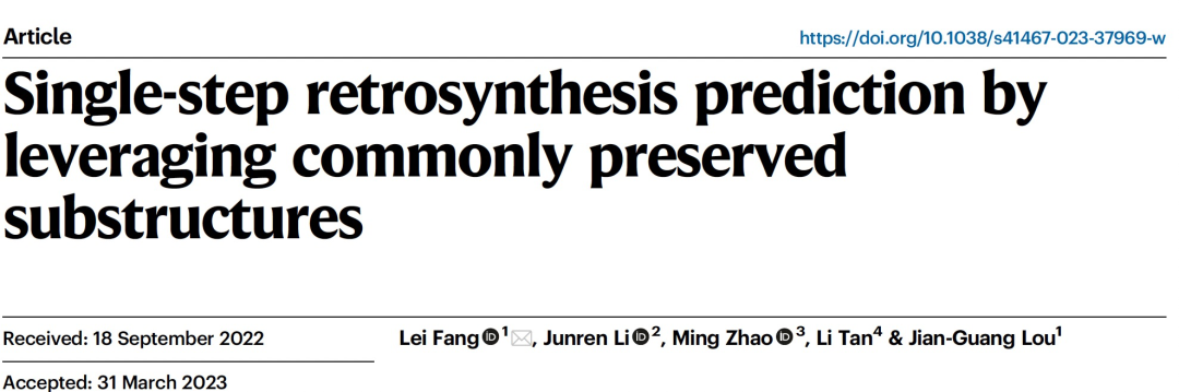 Fang, L., Li, J., Zhao, M. et al. Single-step retrosynthesis prediction by leveraging commonly preserved substructures. Nat Commun 14, 2446 (2023).