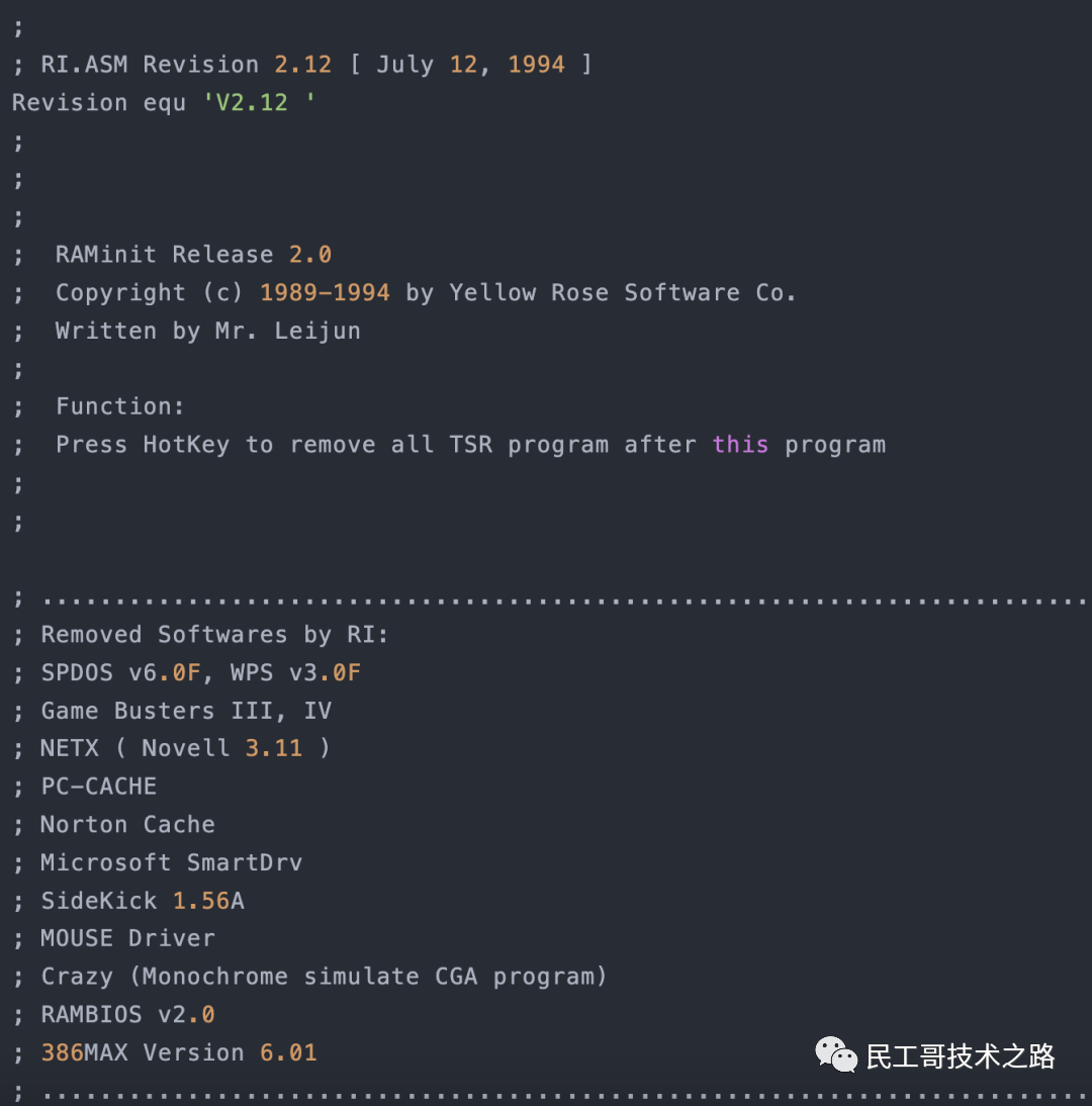 在1990年代初,编写汇编程序需要深入了解硬件和操作系统的内部结构。评判这段代码时,我们需要考虑当时的编程技术、风格和实践。以下是一些评价标准:
