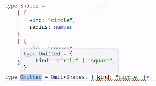 type Omitted = Omit<Shapes, { kind: "circle" }>
