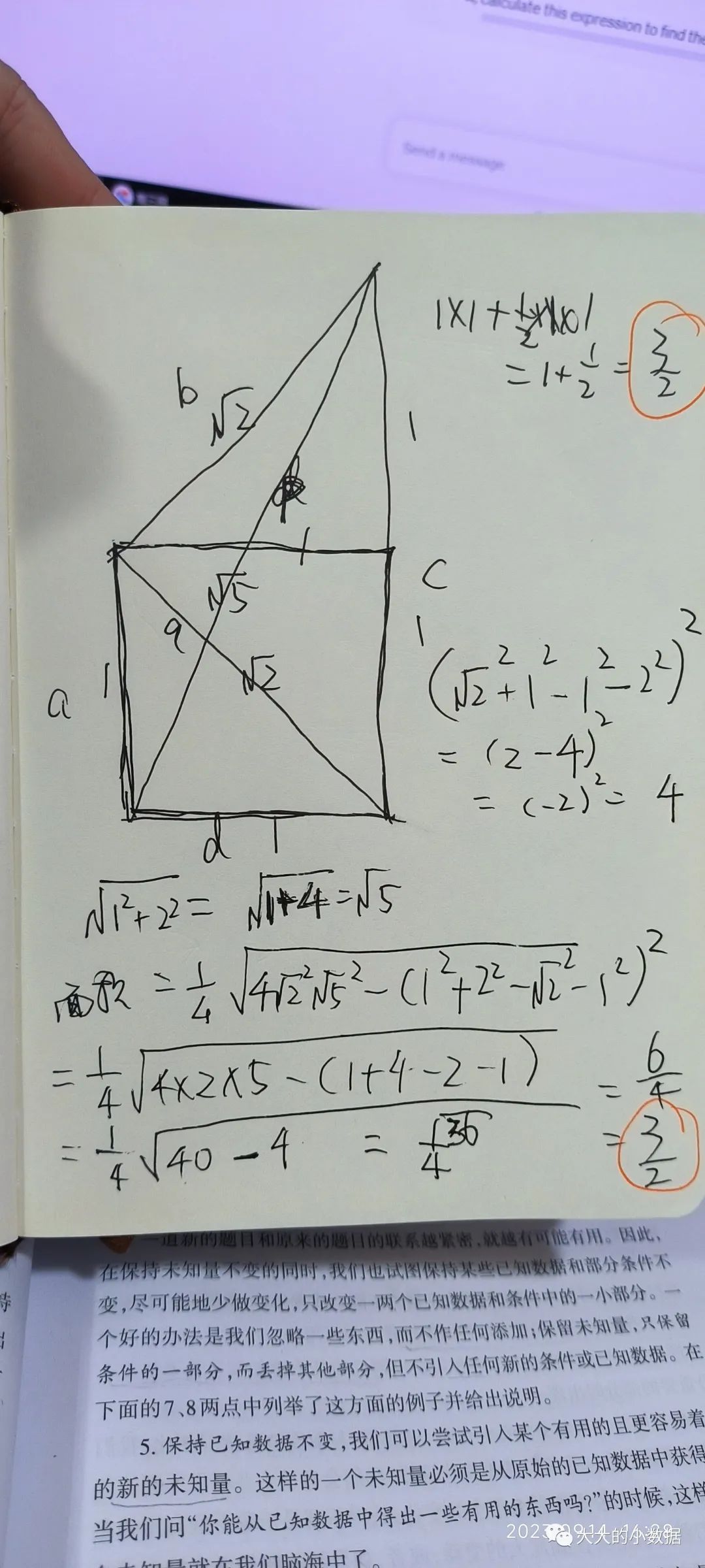 3、边长为1的正方形和三角形组成的四边形面积计算