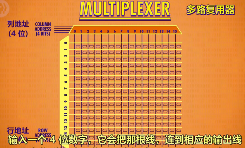 上面我们用的都是16行,因此行和列选择的都是1到16多路复用器。一个多路复用器处理行,一个处理列