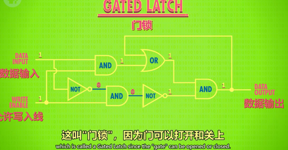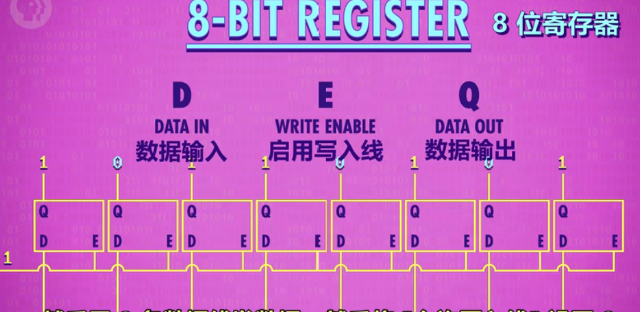 一组这样的锁存器叫做寄存器,寄存器能存一个数字,这个数字有多少位,叫做位宽。早期的电脑是用的八位寄存器,然后发展16位,32位,现在许多计算机都有64位宽的寄存器