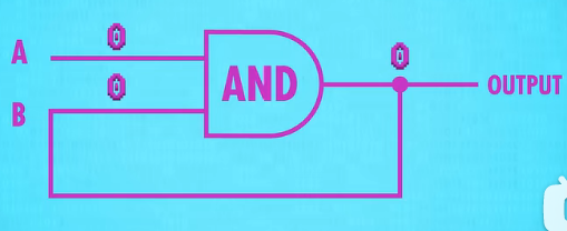 将输出的线路接回到两个输入线路中的其中一个即(输出=A/B) 。只要A/B其中一个输入0,那么输出就是0,由于输出会链接到另一个输入,因此B/A也会为0。之后不管如何变化A/B,B/A始终都为0,因此这个电路就是永久存储0的电路。