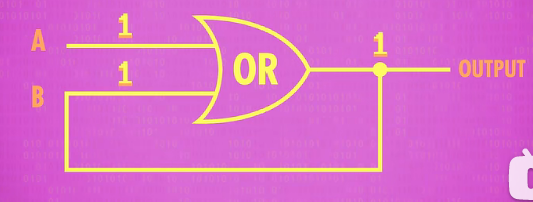 图示:只要当A输入为1的时候,这个电路的输出将会一直是1(输出会链接到B因此B为1),不管A如何变化。也即存储”1“
