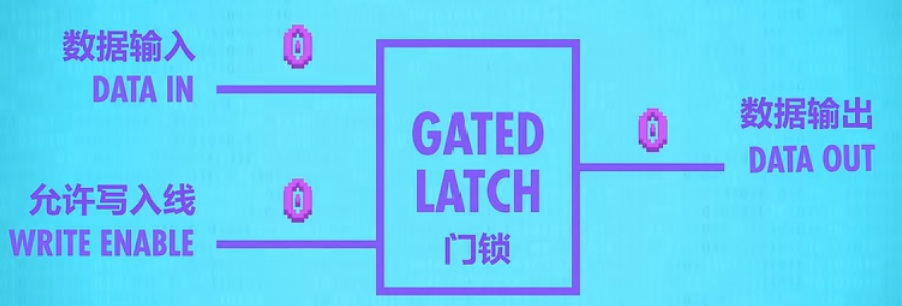 两条线设置和复位太麻烦,为了更容易使用。通过一条输入线设置为0或1来存储值,还需要另外一根线去启用内存,让他存储。启用时允许写入,没有启动时就”锁定“这条线叫”允许写入线“