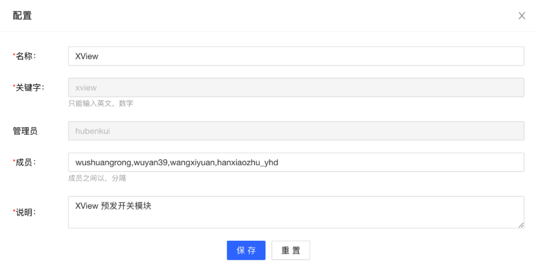 4) 成员:该模块分配的管理成员,成员有新增,删除,修改该模块下的配置权限,但没有修改,删除当前模块的权限;