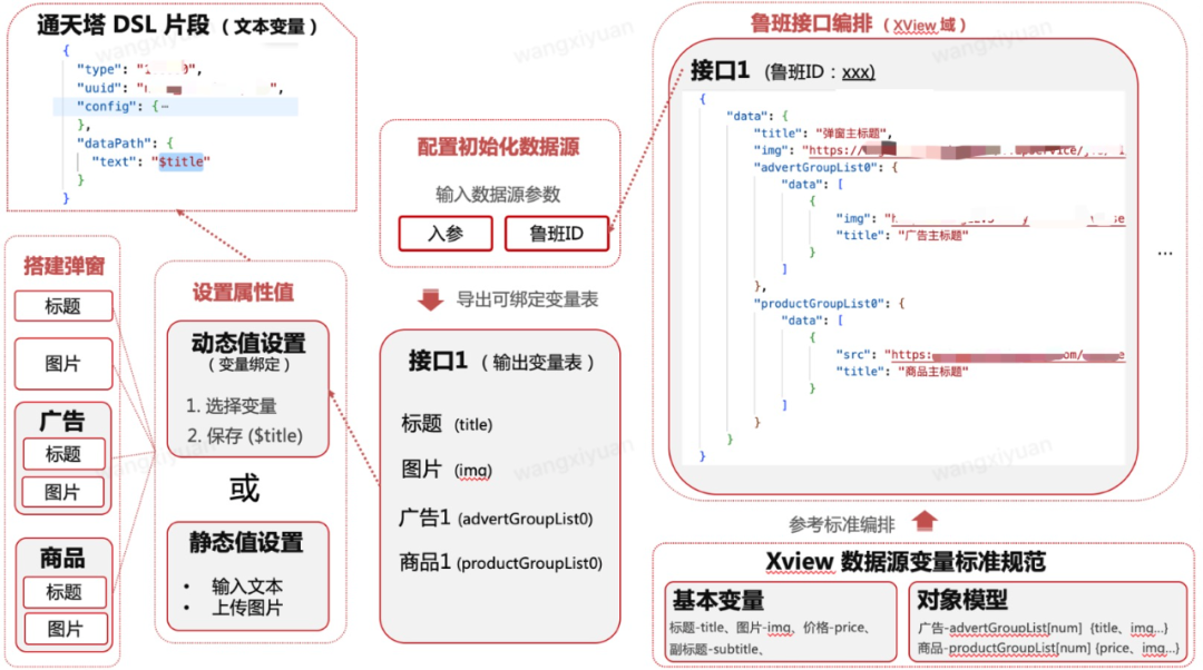 最后,将忽略大量细节部分,然后拉到整体视角来俯瞰一下运营是如何使用XView来搭建和投放弹窗到客户端的。