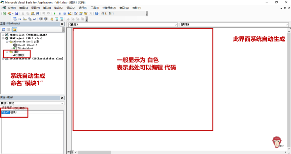 模块(标准代码):该类代码我们常见的用途是以按钮等形式点击就可运行的程序。例如,设定一个按钮,该按钮链接一个小程序,小程序主要功能为合并多个工作簿,那么当我们单击这个按钮时,就会执行多个工作表合并。