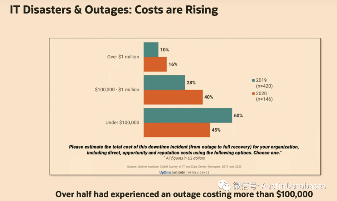 与此同时灾难恢复的成本却在不断的升高,从这里我们可以看到很多可以换提出灾难恢复的成本问题,对比2019年到2020年成本超过了100万美元。
