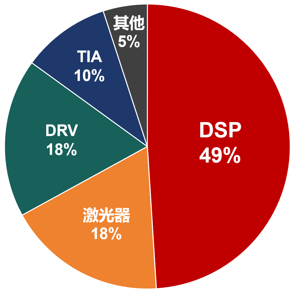 从成本的角度来看,400G光模块中,DSP的BOM(Bill of Materials,物料清单)成本约占20-40%。