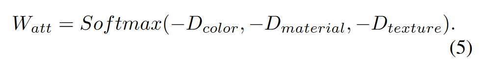 其中 ⊙ 表示卷积运算,Latt 是用于通道自适应的线性投影层,Tc 表示类别特征,而 Tco、Tm 和 Tt 分别表示动态颜色、材质和纹理特征。