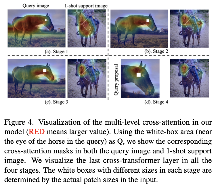 在detection head部分,和以上操作相反,在每张query上提取完proposal之后经过ROI Align可以得到ROI特征fp∈RBp∗H′∗W′∗C3,其中Bp=100,为了减少计算复杂度还是对support进行ave操作fs′=1Bs∑Bsfs,fs′∈R1∗H′∗W′∗C3,然后使用Asymmetric-Batched Cross-Attention计算俩分支attention,不同的是,query分支Bp≥1 and Bs′=1 。