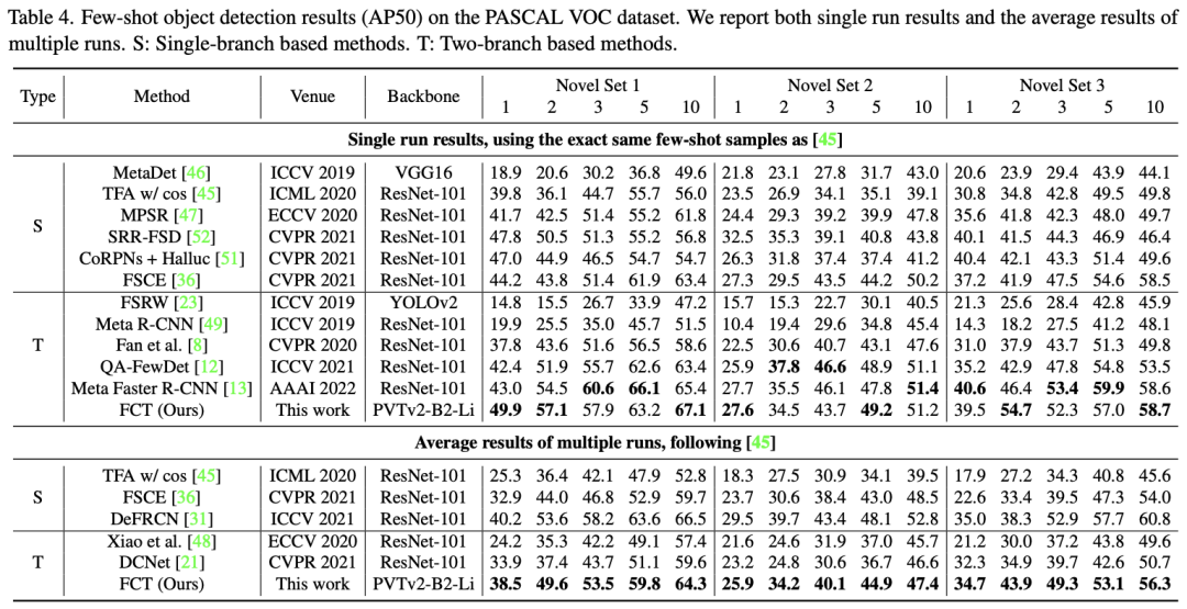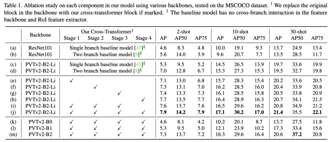然而,在之前的工作中,两个分支之间的交互只限于检测头,而剩下的数百层用于单独的特征提取。受最近关于视觉转换器和视觉语言转换器的工作的启发,研究者提出了一种新颖的基于完全交叉转换器(Fully Cross-Transformer)的FSOD模型 (FCT),方法是将交叉转换器整合到特征主干和检测头中。提出了非对称批处理交叉注意来聚合来自具有不同批处理大小的两个分支的关键信息。新模型可以通过引入多级交互来改善两个分支之间的少样本相似性学习。PASCAL VOC和MSCOCO FSOD基准的综合实验证明了我们模型的有效性。