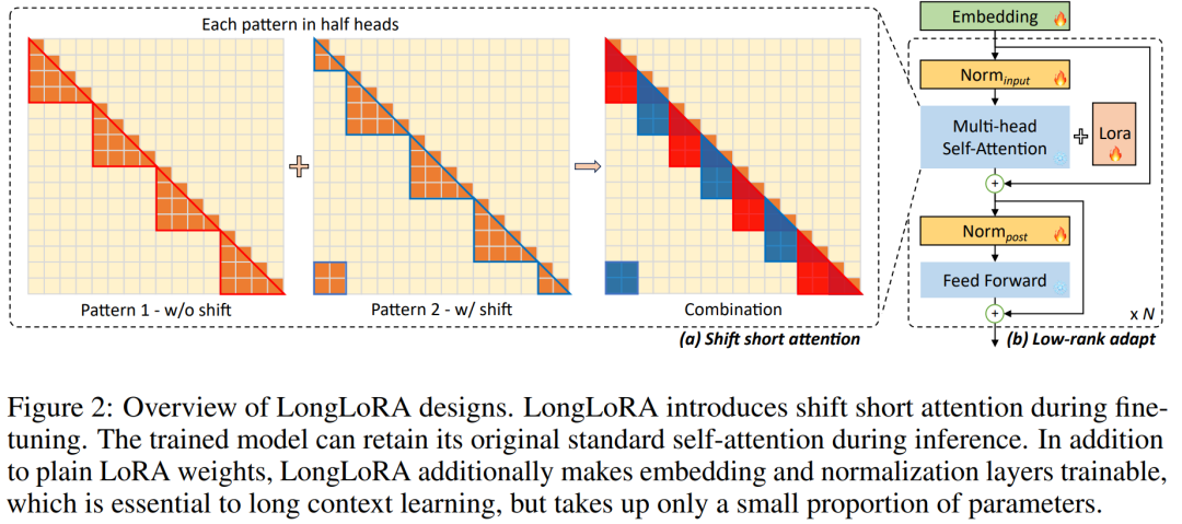LoRA的主要工作原理是通过使用低秩权重更新来近似完全微调,地作者发现短时间的注意力也能够在训练过程中近似长上下文。为此作者提出短时转移注意(