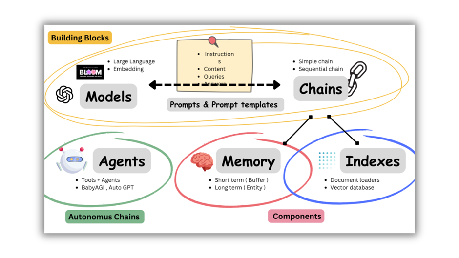 通过融合先进原则,LangChain正在重新定义通过传统API可以实现的极限。此外,LangChain应用程序是主动的,使语言模型能够轻松地与其环境交互和适应。Langchain由几个模块组成。正如其名称所示,连接不同的模块在一起是Langchain的主要目的。这里的想法是将每个模块链接在一个链中,并最终使用该链一次性调用所有模块。