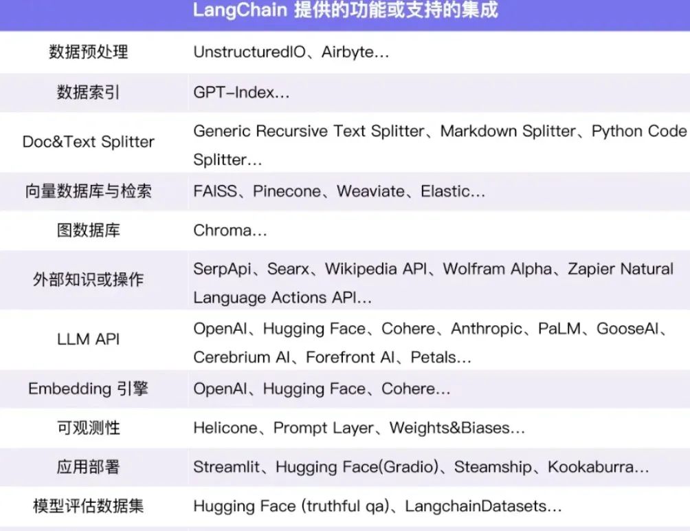LangChain简化了Prompt提示词的管理,提供提供了优化能力,为所有LLM提供了通用接口,并包括用于处理LLM的常用程序。LangChain为链式调用提供了标准接口,使开发人员能够创建超出单个LLM调用的调用序列。LangChain 还为开发人员提供了创建与外部数据源集成的链的能力,此功能使基于特定数据而不是用于训练语言模型的通用数据生成文本成为可能。而且,LangChain为开发人员提供了一个标准接口,使LLM能够根据LLM的输出做出明智的决策,确定采取哪些行动以及何时采取这些行动。记忆能力是LangChain中的一个关键概念,因为它涉及在链/代理的调用之间保留状态。LangChain还提供了一个标准的记忆接口、一系列的记忆实现以及使用记忆的链/代理的示例。