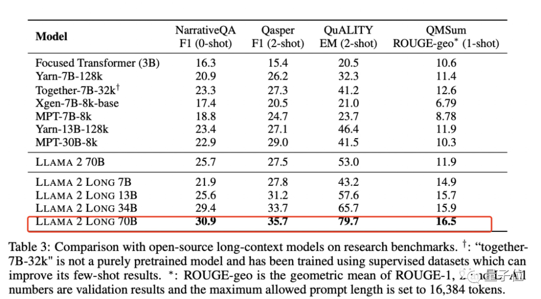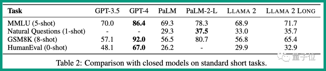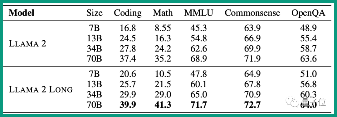 要知道,这些对比版本中,LLaMA 2 Long使用的最大版本也只有70B,远小于其他大模型。