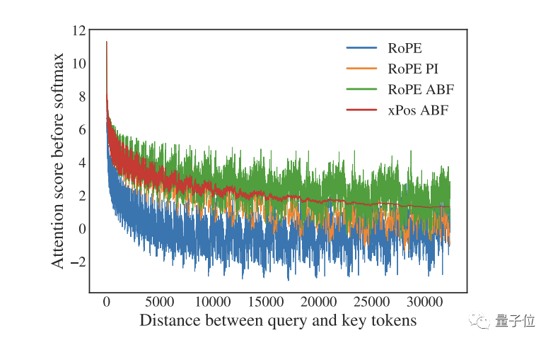 Ps. 图中RoPE表示基线方法,RoPE ABF为Meta此次发明的新方法,xPos是另一种应用了该方法的旋转编码变体。