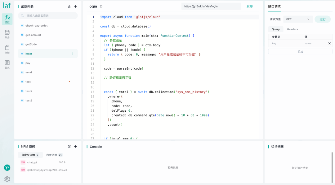 laf 是一个开源的云开发平台,提供了云函数、云数据库和云存储等现成的应用资源。它允许开发者专注于业务开发而无需关心服务器配置,从而快速释放创造力。