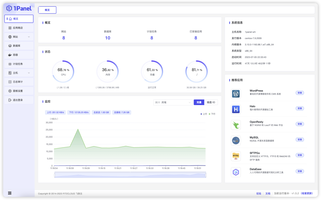 1Panel 是一个现代化、开源的 Linux 服务器运维管理面板。其主要功能和优势包括: