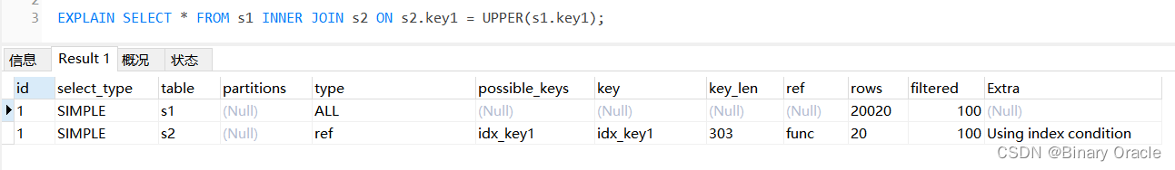 可以在对s2表的执行计划的Extra列显示了两个提示:
