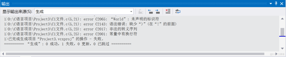 我们执行之后会出现多条语句报错,但是我们也可以明显的看出第一条报错明显指出hello word单词出现错误,下面的错误因为前面缺少语法从而导致一系列错误,所以则认为一条语句错误会引发多条语句错误。