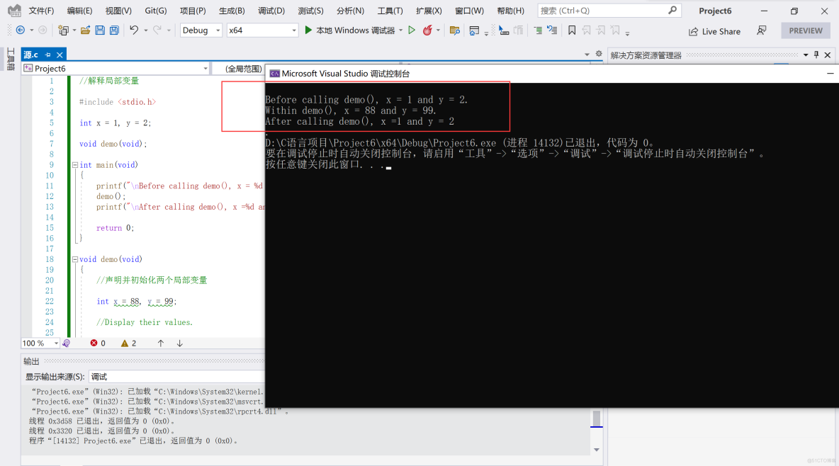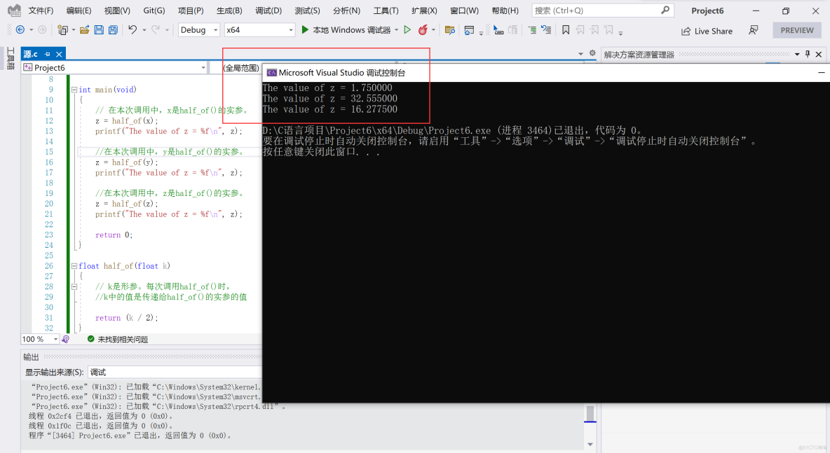 第9,10,11行调用了两个函数。第13~16行打印值。