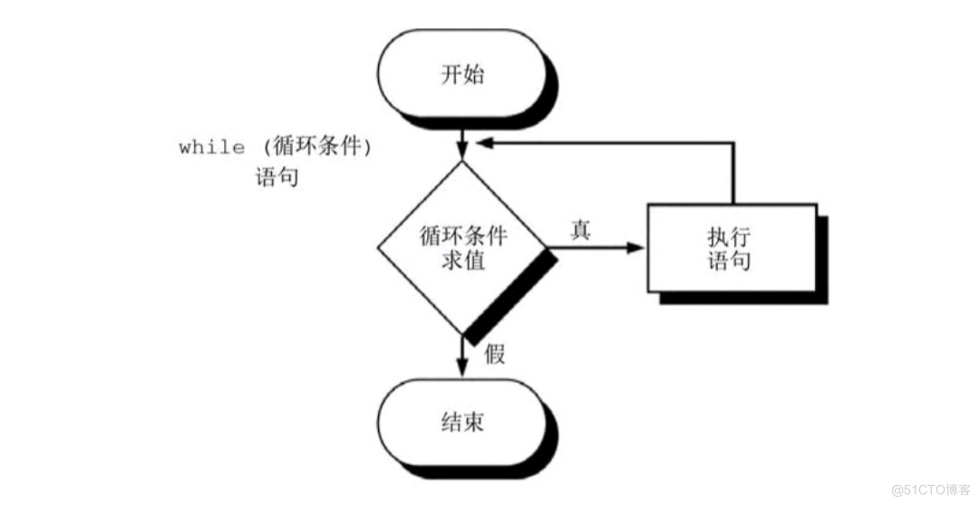 接着再次检查循环条件。这一过程将一直循环下去,直至循环条件的求值结果为假。