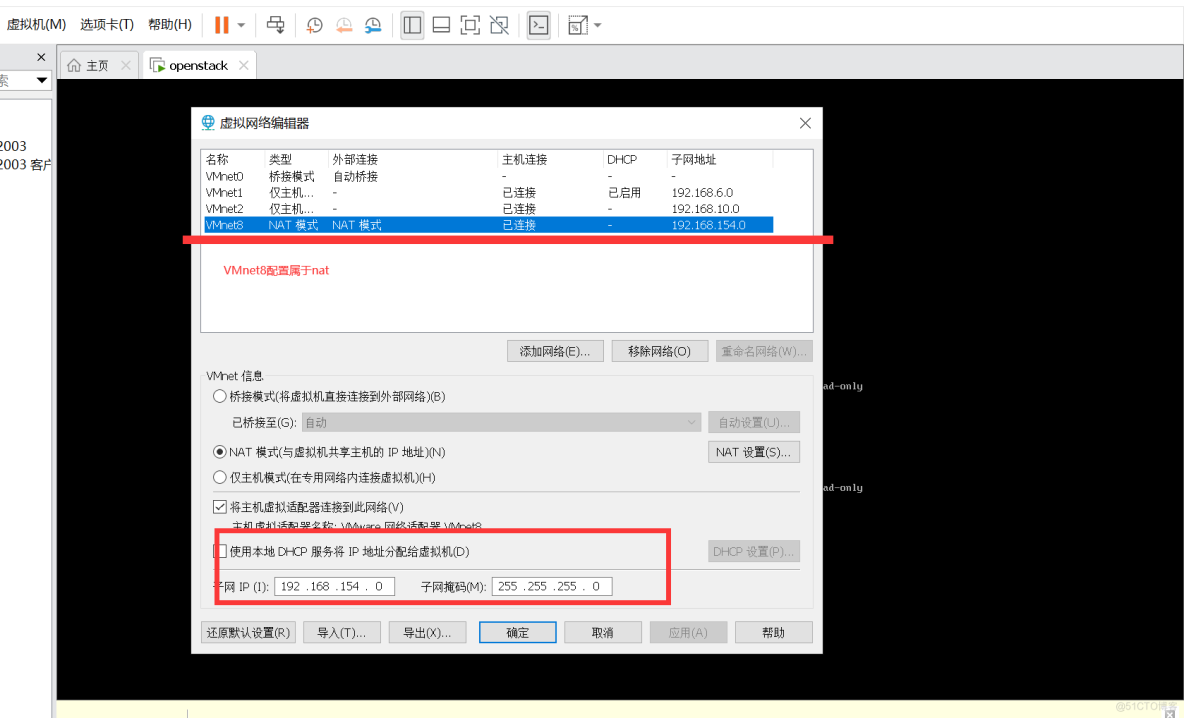 openstack | 192.168.154.101/24 | 192.168.154.2 |