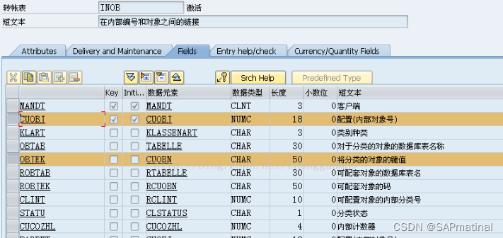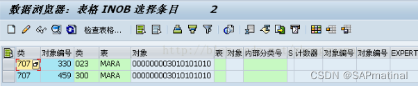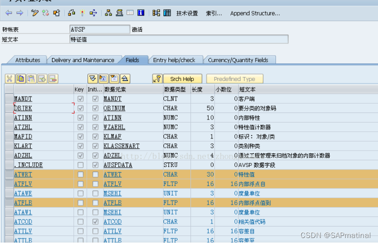 2. AUSP: AUSP-OBJEK = INOB-OBJEK , 通过上面的Int. object no. 找到所有的特性值. 注意: 特性值有两列,