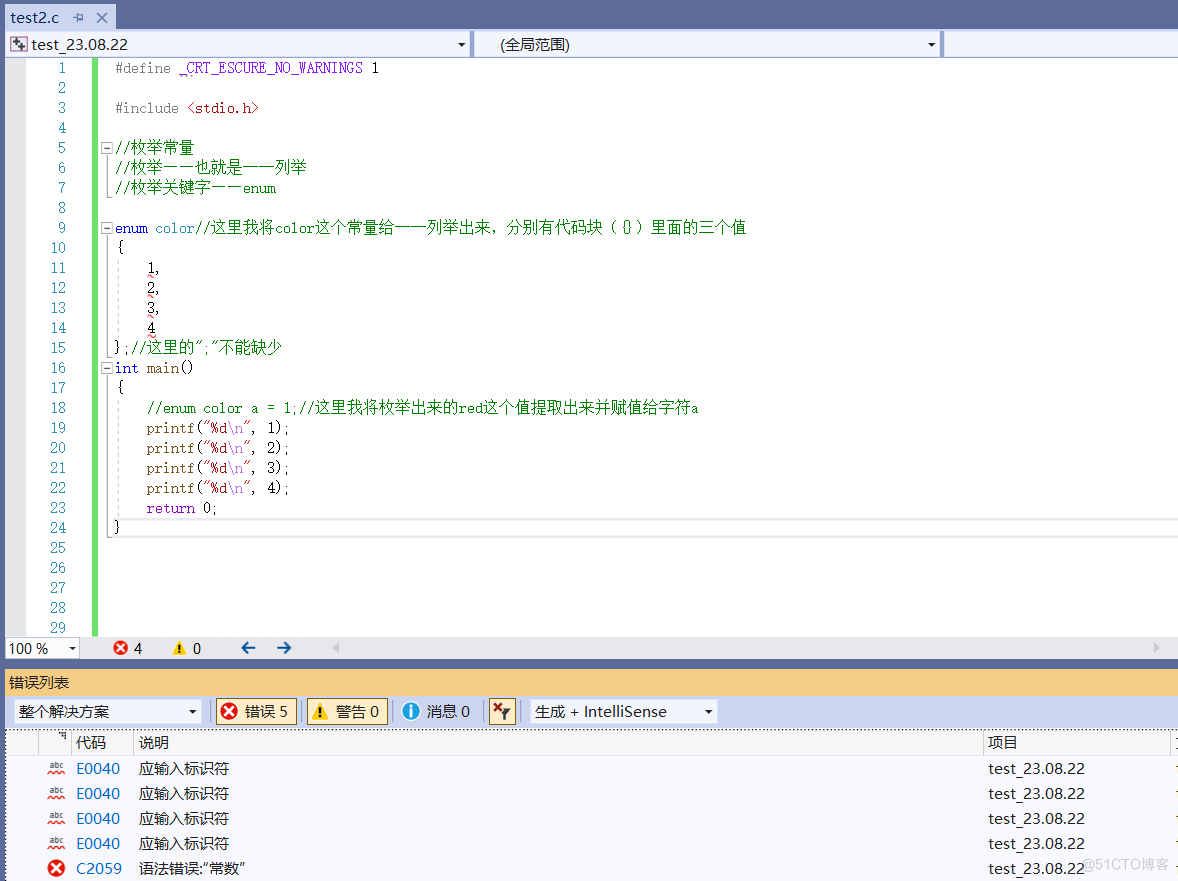 前面我分享了字面常量与const修饰的常变量,并解释了常变量的常属性与变量本质,今天我将继续介绍常量的另外两个分类——#define定义的标识符常量以及枚举常量。