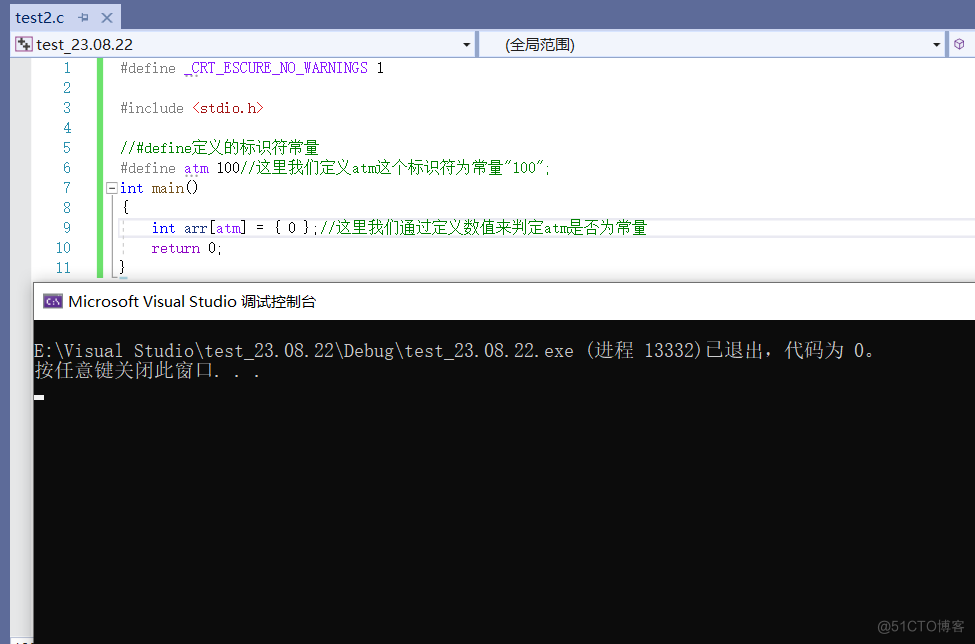 int arr[atm] = { 0 };//这里我们通过定义数值来判定atm是否为常量