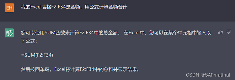 假设我是个小白,连求和公式也不会,想要对金额进行总计,我就可以找ChatGPT帮忙。