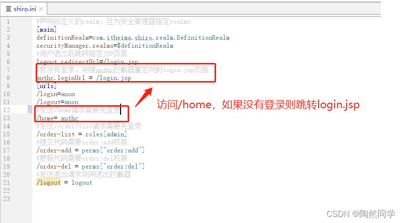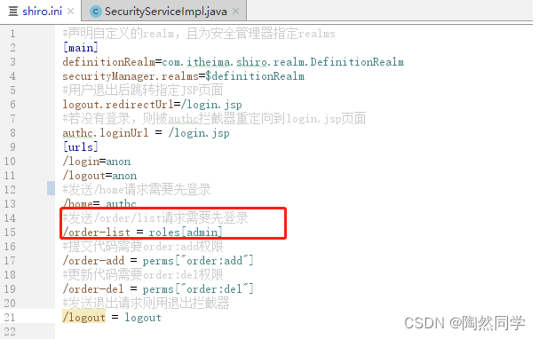 }不过,现在我们既然说要与WEB集成,那么首先要做的事情就是把我们的shiro.ini这个配置文件交付到WEB环境中,定义shiro.ini文件如下