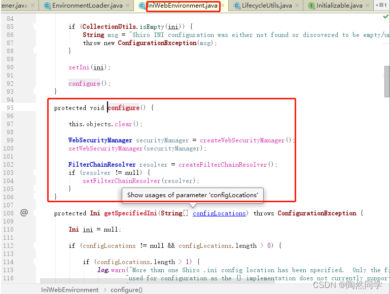 </web-app>上面我们集成shiro到web项目了,下面我们来追踪下源码,看下SecurityManager对象是如何创建的
