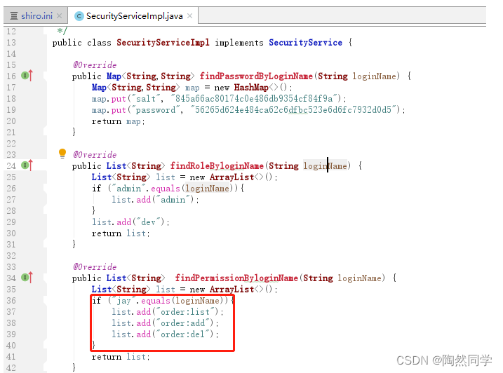 因为SecurityServiceImpl中为jay用户添加如下的资源