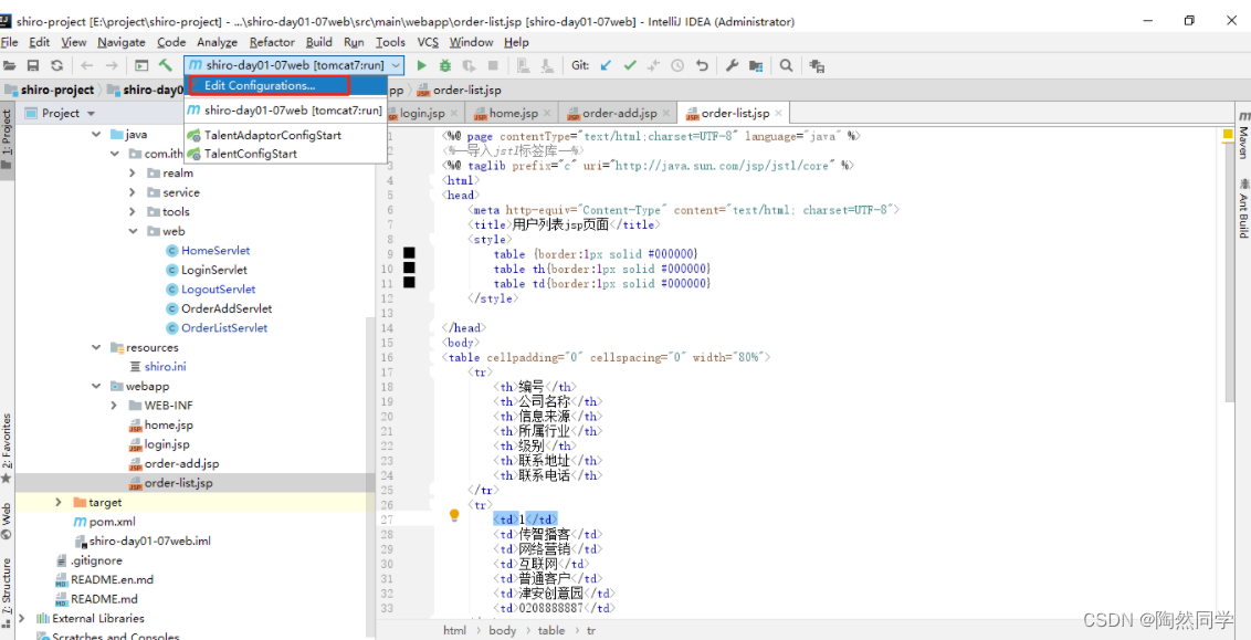 拷贝shiro-day01-08web-java新建shiro-day01-09web-jsp-taglib项目