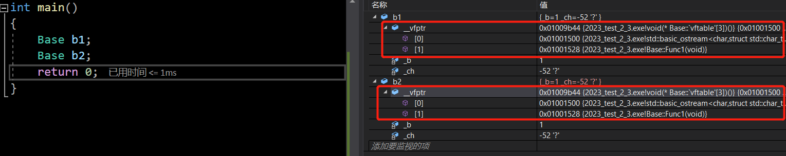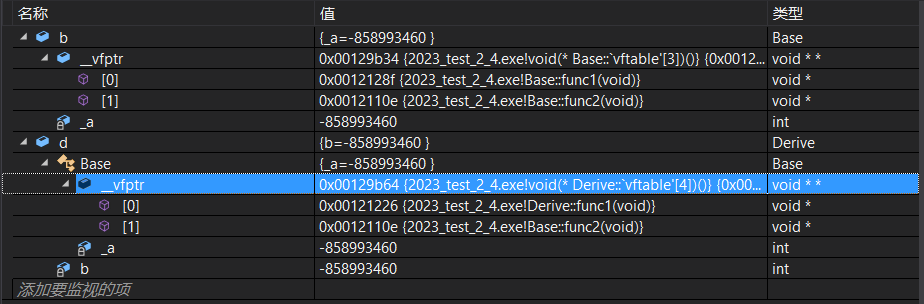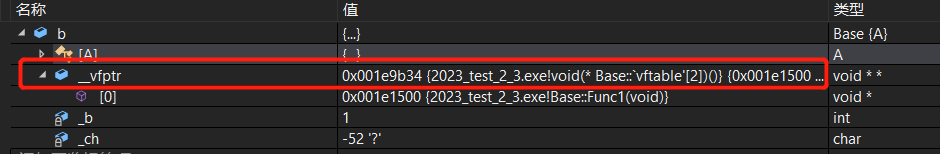 调试观察,我们发现除了成员变量外,还有多一个__vfptr :