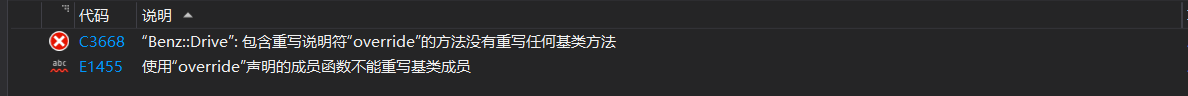 在重写基类虚函数时,派生类的虚函数在不加virtual关键字时,虽然也可以构成重写(因为继承后基类的虚函数被继承下来了在派生类依旧保持虚函数属性),但是该种写法不是很规范,不建议这样使用: