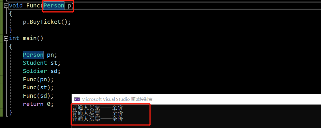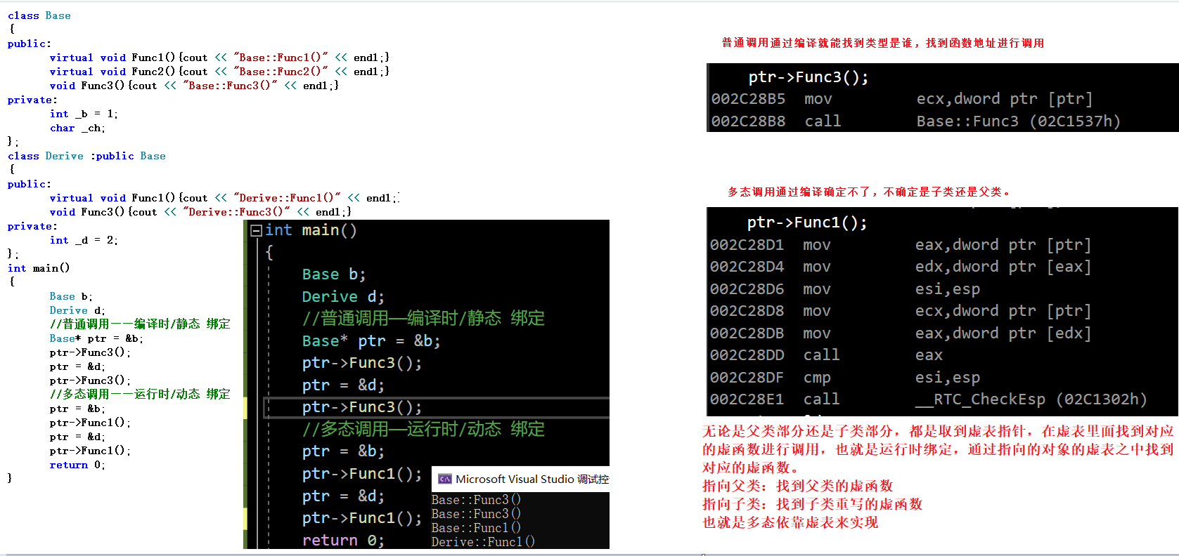 对于普通调用:跟调用对象类型有关,对于多态调用:通过指针/引用指向对象有关。刚开始的代码体现中我们用的就是引用,如果没有引用就不符合多态了: