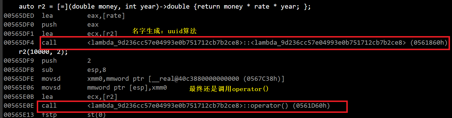 而Lambda 表达式实际也是这样子的:会调用 <lambda_uuid> 类的构造函数,在使用Rate r2对象时,会调用<lambda_uuid>类的 operator()运算符重载函数。