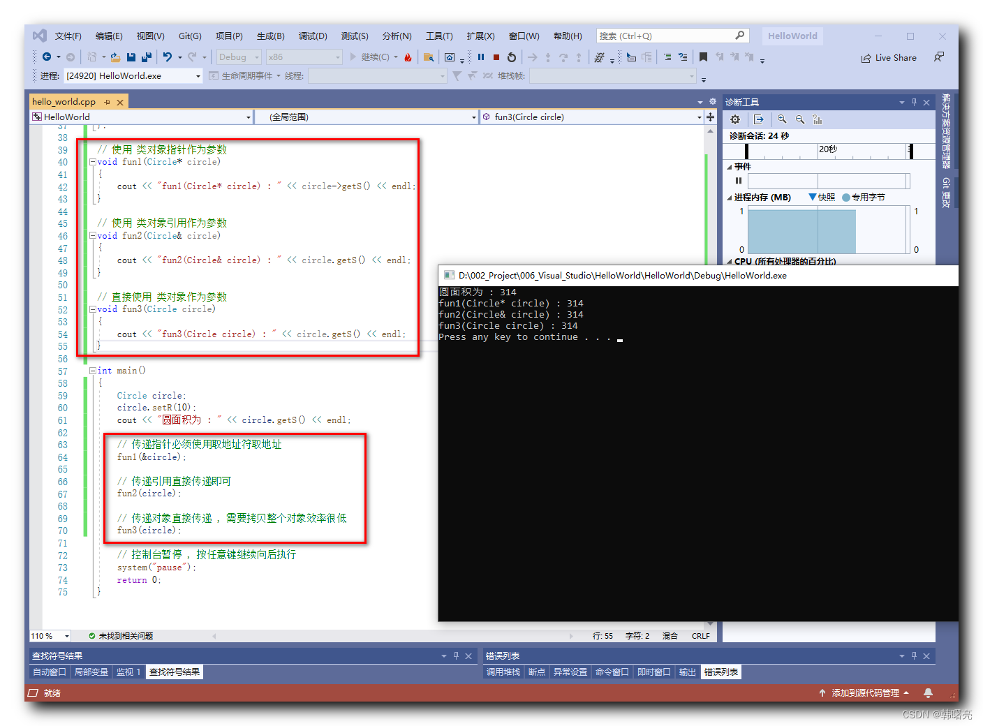 使用 类 对象 作为函数参数时 , 分别讨论下面三种情况 ;