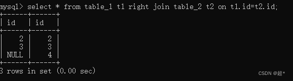 select * from table_1 t1 right join table_2 t2 on t1.id=t2.id;