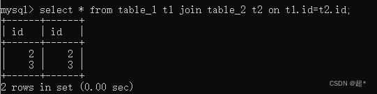 select * from table_1 t1 join table_2 t2 on t1.id=t2.id;