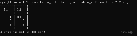 select * from table_1 t1 left join table_2 t2 on t1.id=t2.id;