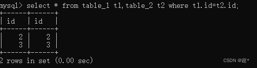 select * from table_1 t1,table_2 t2 where t1.id=t2.id;