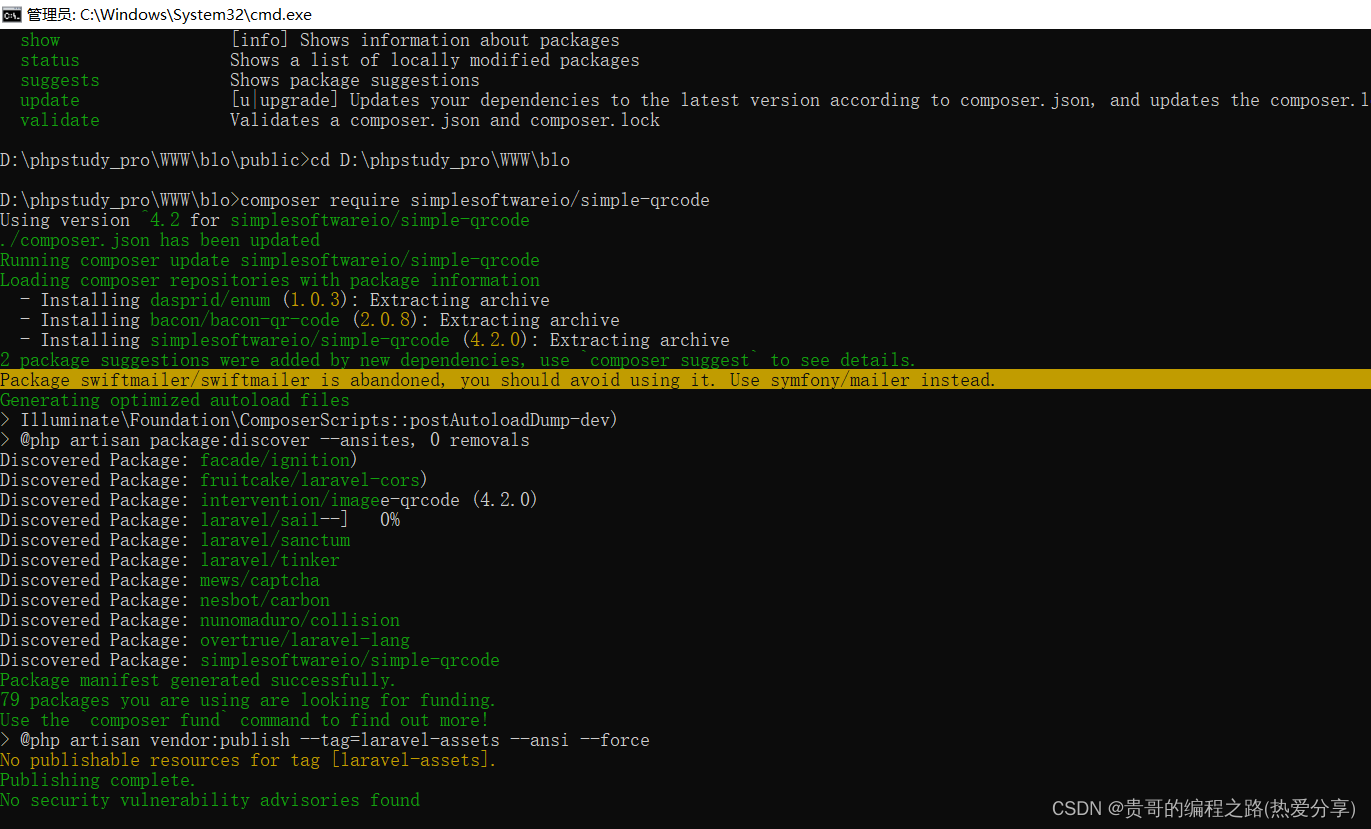 echo QrCode::generate('Hello,LaravelAcademy!');//生成一个二维码